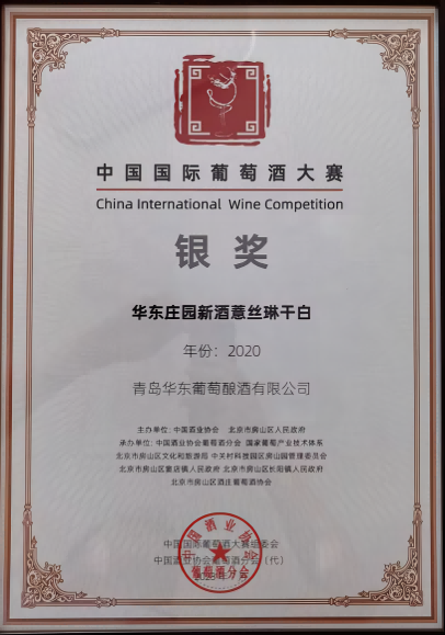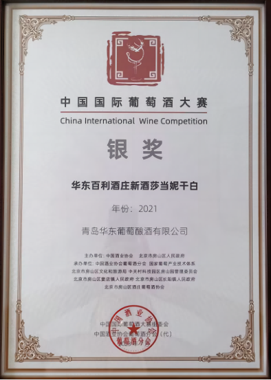 华东庄园新酒薏丝琳干白、华东百利酒庄新酒莎当妮两款产品荣获中国国际葡萄酒大赛银奖